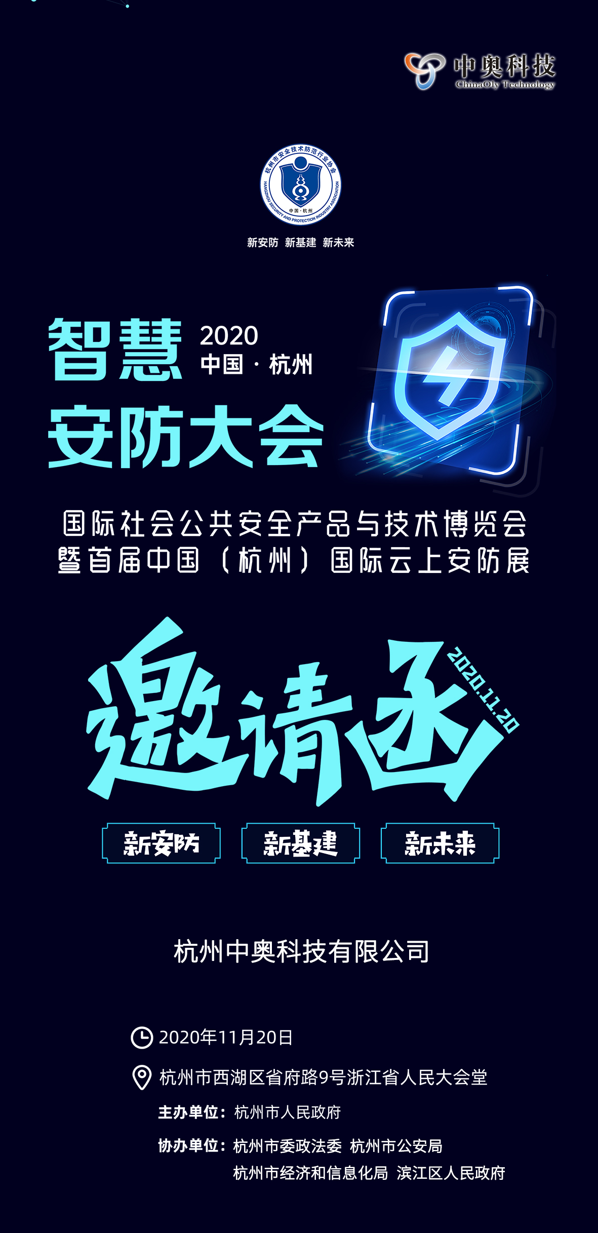 【邀請函】中奧科技邀您共赴2020中國(杭州)國際社會公共安全產品與技術博覽會暨首屆中國(杭州)國際云上安防展